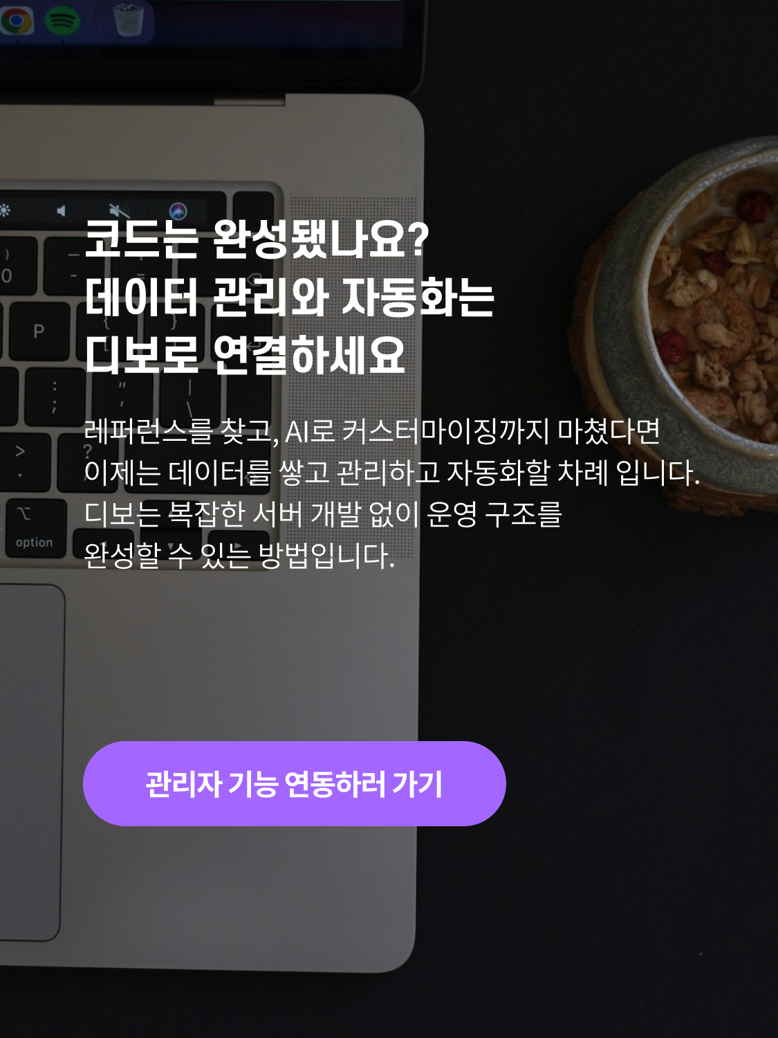 디자인 코드부터 데이터 저장 · 수정 같은 서버 기능까지실제로 바로 쓸 수 있는 코드만 제공합니다
