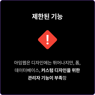 *본 서비스는 아임웹과 공식적인 제휴, 협력, 파트너십 관계가 없는 독립적으로 운영되는 외부 서비스입니다.