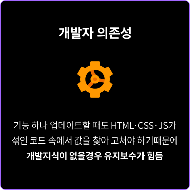 개발 지식 없이 운영·관리가 복잡해지고 유지보수는 더 힘들어집니다.