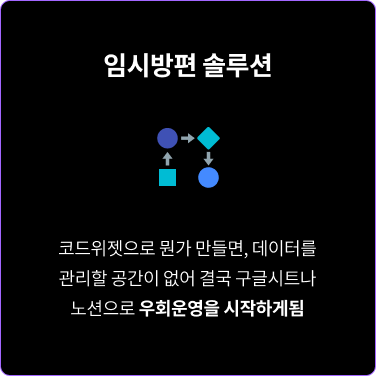 구글시트·노션 같은 임시 도구에 기대야 하고,